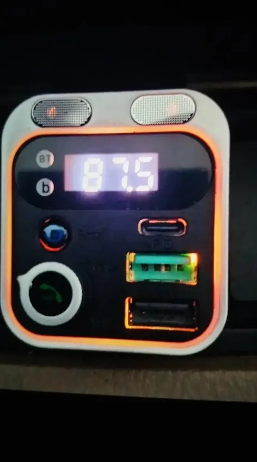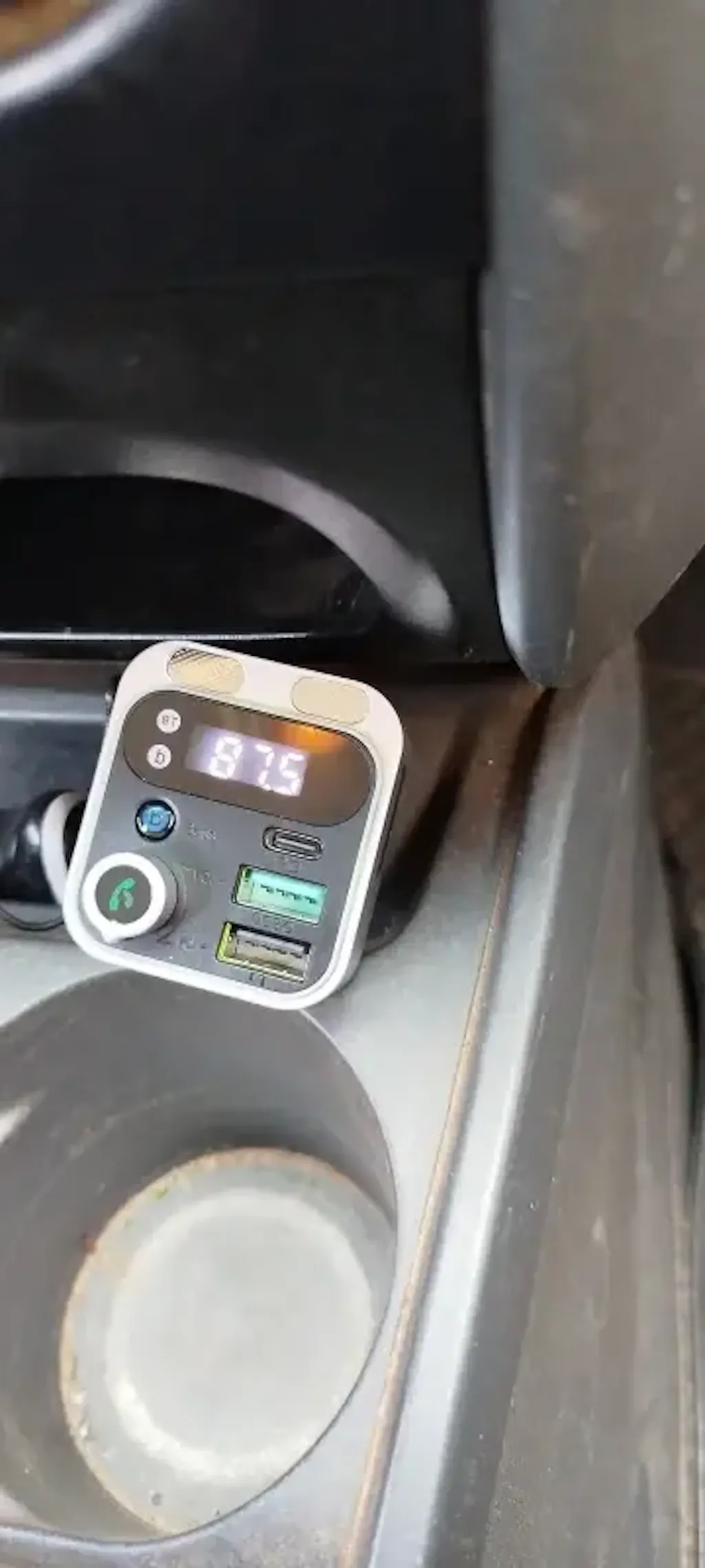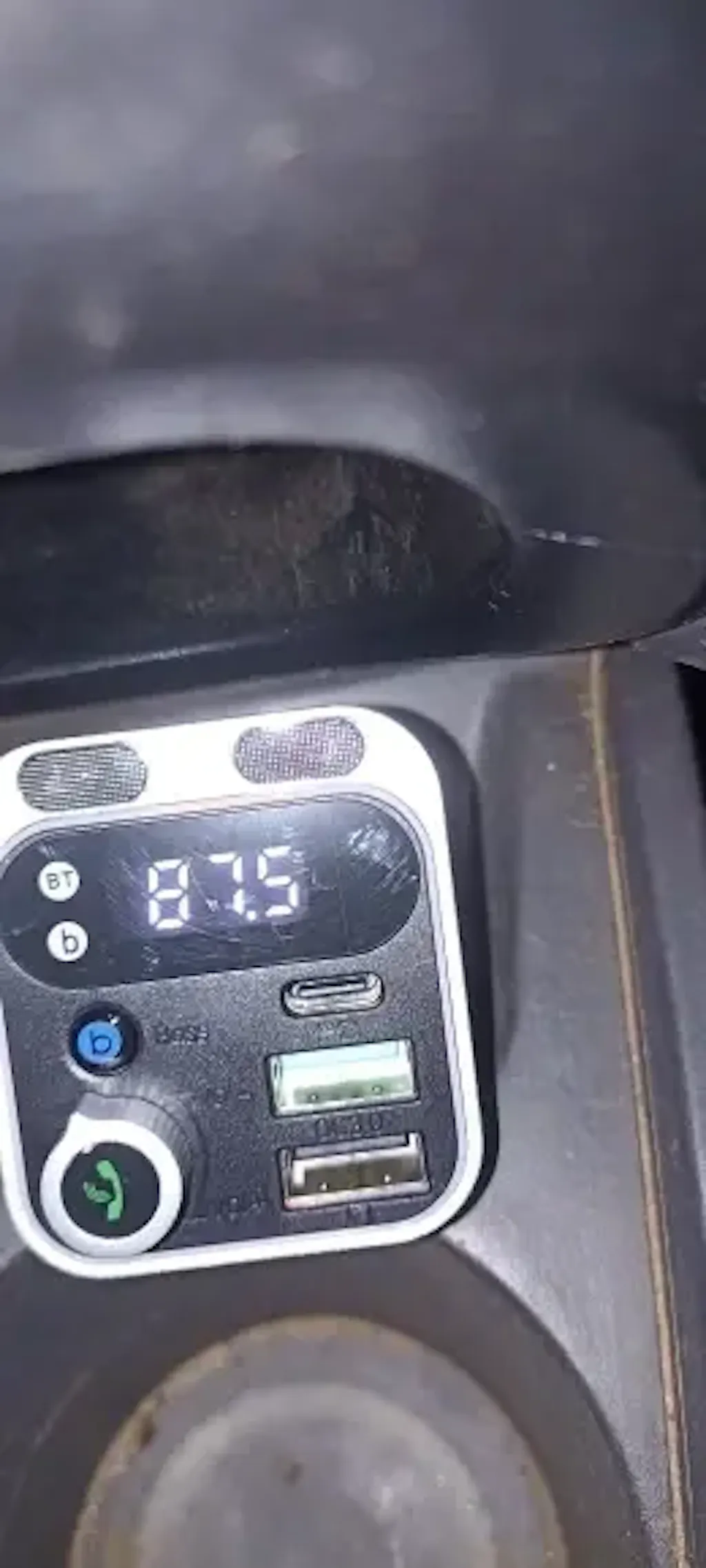 Enjoy smart driving with this Bluetooth 5.0 Car Charger FM Transmitter, featuring PD Type-C fast charging, dual USB ports, ambient LED light, hands-free calling, and MP3 music playback — the perfect all-in-one car accessory.